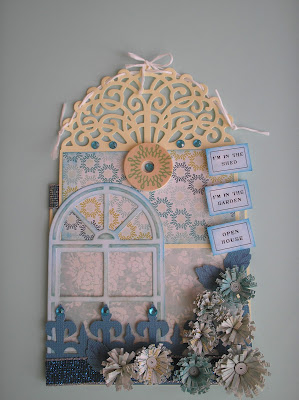 DP's and embellies from MME Bluebell collection, TH Iron Gate, Petals from Tonic Pick of the Bunch Rose punch and stamp set, Pick of the Bunch Domed Window, Ribbon and String, Gemstones.