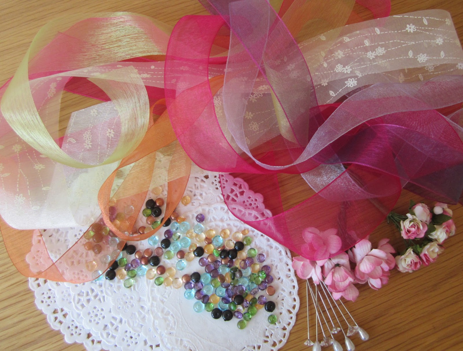 A selection of ribbons and embellishments from Pretty Little Ribbons